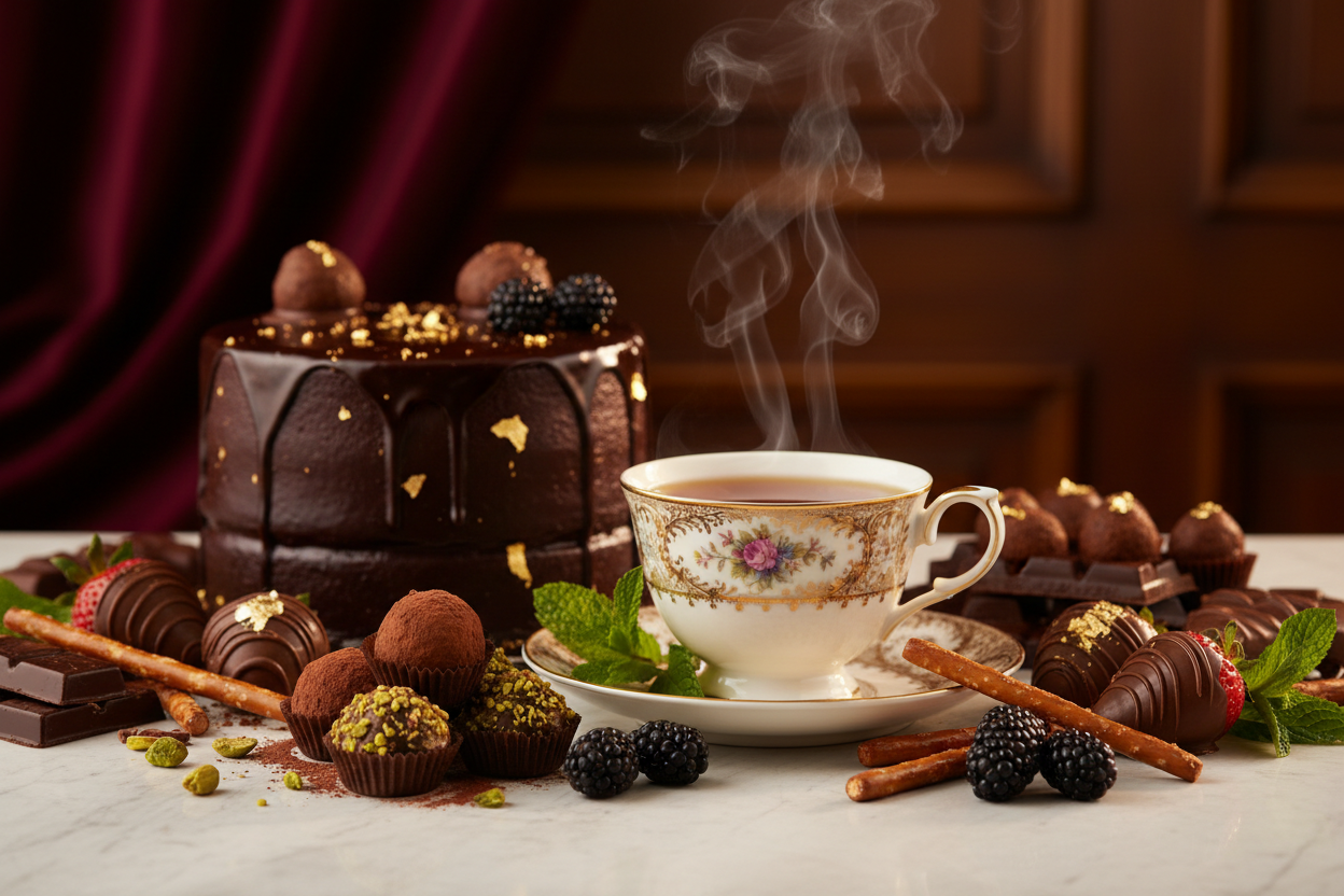 Indulge in the luxurious embrace of Chocolate Mint, a decadent seasonal blend that masterfully combines the bold depth of Ceylon black tea, the richness of cacao, and the refreshing crispness of peppermint. This exquisite fusion offers a velvety chocolate taste, perfectly balanced with a cool, invigorating mint finish. An indulgence perfect for afternoons and evenings.